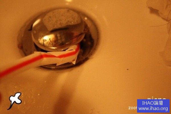 ▼把吸管上纏滿的頭髮清掉,再次把吸管往排水孔伸進去,轉轉看還有沒有剩餘的頭髮…