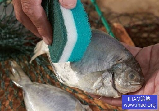 法則2/使用清除魚鱗菜瓜布刷去細小魚鱗。
