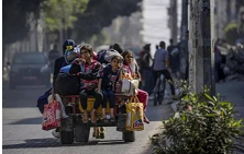 幾名加薩孩童坐著馬車再次踏上逃亡之路