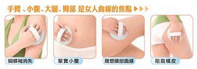 【阻脂橘皮】取適量緊實霜塗抹於側腹及後腰處,由下往上﹁由內而外輕輕塗抹,使用精華露先以打圈方式往上按摩,再以緊捏的方式上下掐捏,至產品完全吸收。