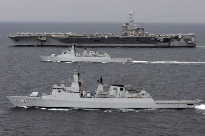 10月15日,正在南海執行戰備巡邏任務的美軍華盛頓號航空母艦戰鬥群與馬來西亞海軍進行了聯合訓練。訓練中,馬來西亞海軍派出兩艘戰艦與華盛頓號航母組成編隊航行,還派出兩架SU-30戰機與美軍第27艦載機攻擊大隊的兩架F/A-18艦載戰鬥機組成編隊飛行,從華盛頓號航母的上空飛過。