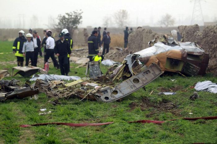 當地時間11月14日,伊朗馬什哈德附近,消防員在事故現場進行查看並清理墜毀直升機的殘骸。