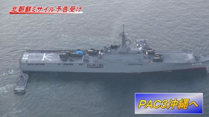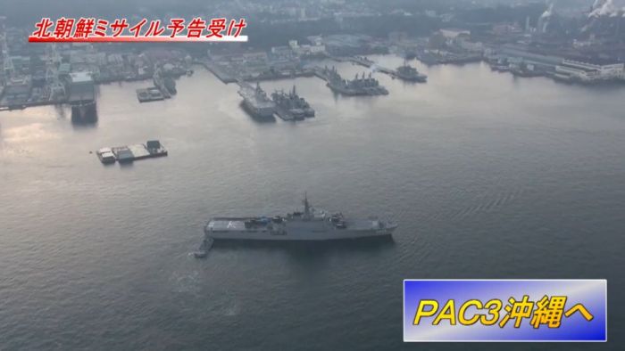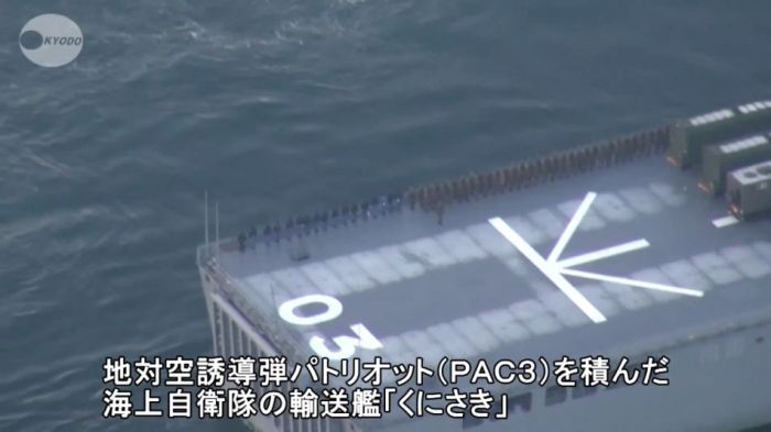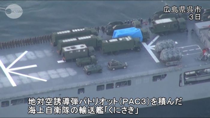 2012年12月3日早上,日本海上自衛隊國東號兩棲運輸艦從吳港基地出發向沖繩島運送航空自衛隊的愛國者3防空部隊,以便執行「摧毀朝鮮衛星準備令」這是日本接到朝鮮將要發射衛星後的最新動作。