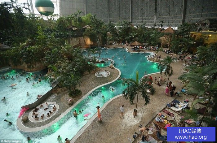 室內旅遊度假村在一個巨大的德國飛機庫
