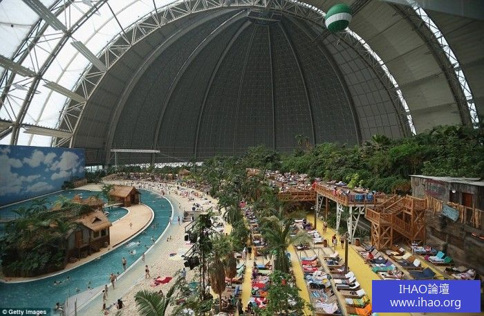 » 室內旅遊度假村在一個巨大的德國飛機庫