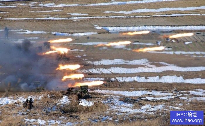 金正恩指揮朝鮮人民軍舉行登陸反登陸訓練。圖為朝鮮女兵發射火箭彈。