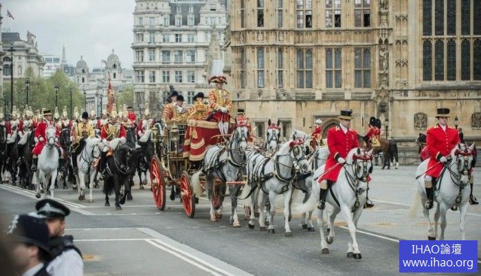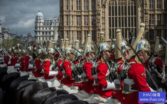 英國國會開議女王現身參加,並且出動皇家衛隊與禮砲