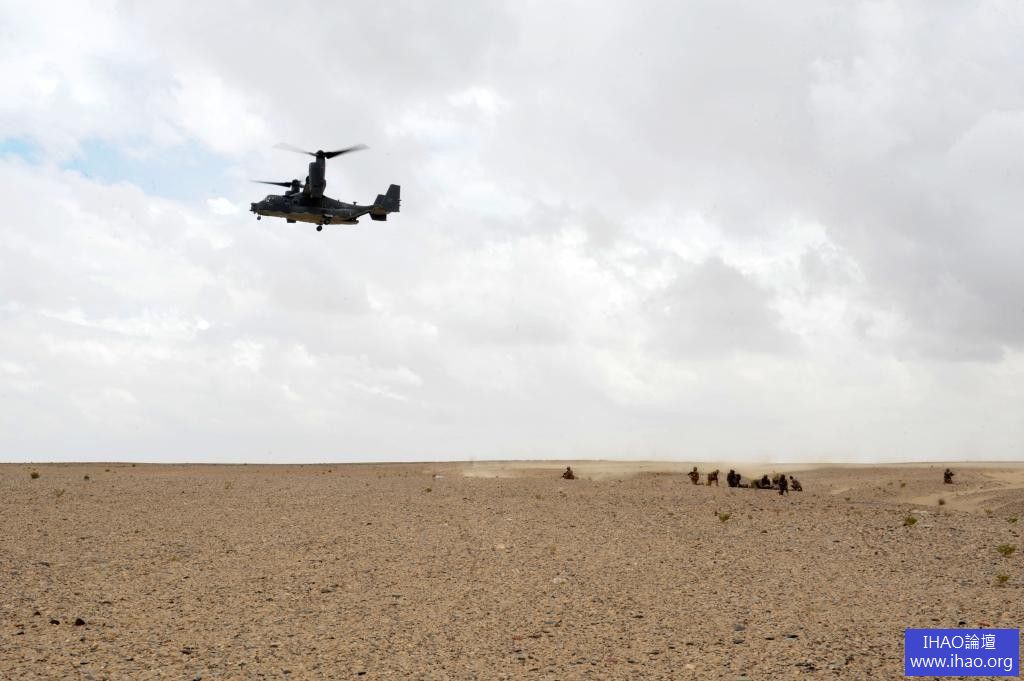 美軍駐在卡達的部隊實施傷兵後送演習,空軍派出CV-22魚鷹機支援 2013.04.30