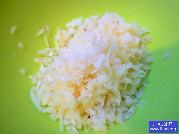 2馬鈴薯去皮,刨絲,切成小丁