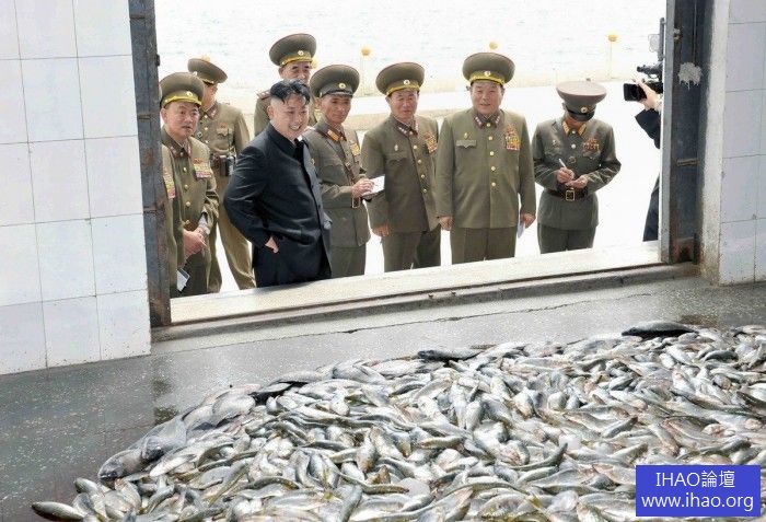 圖為金正恩在人民軍後勤基地冷庫參觀,冷庫內整齊擺放著大量冷凍魚。