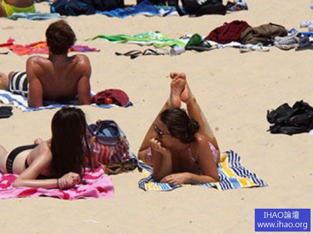 即使是邦迪海灘一天中最熱的時間——下午一點鐘,甚至氣溫高達攝氏38度,但海灘依然人山人海,老外們絲毫不懼怕強烈的陽光,躺在白色細軟的沙灘上,享受美麗的陽光,海邊沙灘比基尼美女如雲,令人目不暇接。