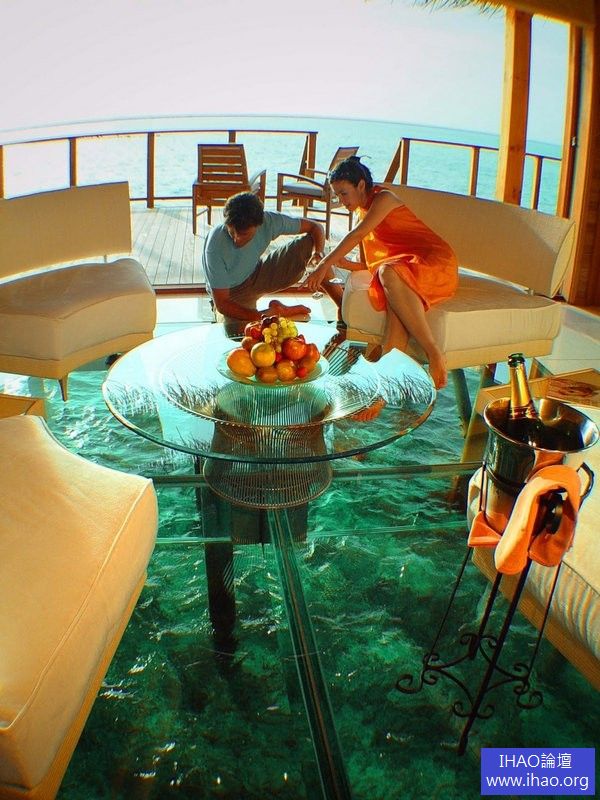 在馬爾地夫,體驗玻璃地板的海上小屋。