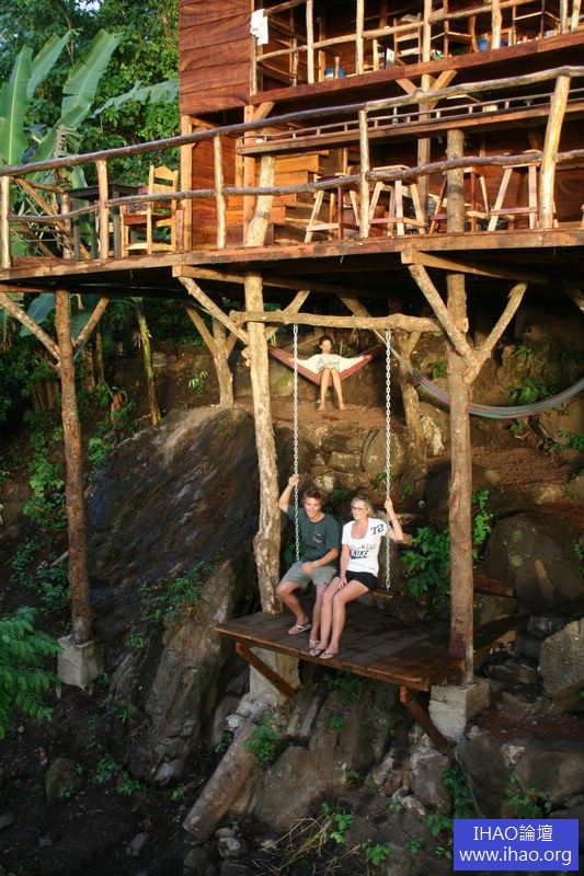 在尼加拉瓜格蘭納達波尼,樹屋下蕩鞦韆。
