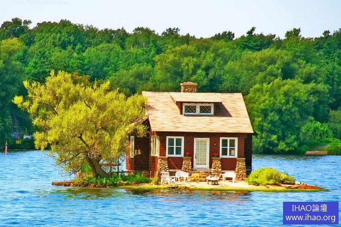 在加拿大千島群島,坐在小門廊前。