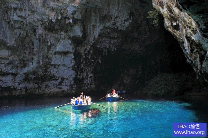 在希臘聖托里尼島,徜徉在洞穴泳池中。