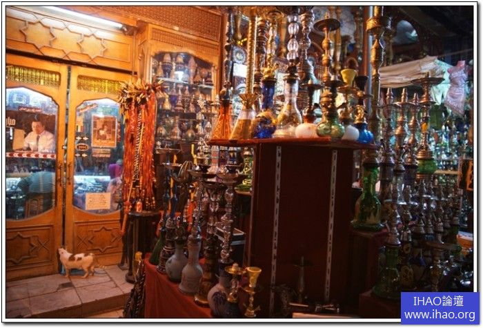 集市裡有專門出售水煙具的商店,水煙是埃及時間的流淌方式。煙具底部的玻璃樽大多裝飾著描金或燙金的圖案,樽裡裝著清水,每抽完一次煙便換一次水。香水店、香料店和香精店則是哈利利市場迷人的體香。作為世界上最大的香料貿易中心,那是沉浸著歷史的芳澤、讓法國鼻子也為之驚艷的香型。