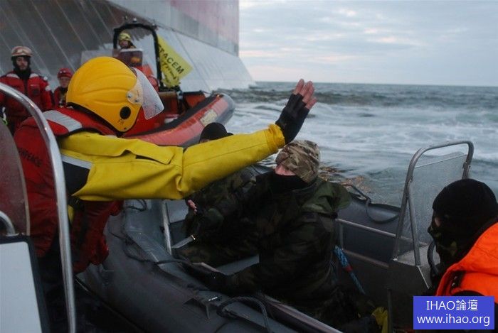俄羅斯邊防部門接到報告,迅速調集周邊船艇前往驅逐,俄羅斯武裝拖船鳴炮示警,俄羅斯軍人駕快艇衝撞示威者,並用手槍和短刀威脅綠色和平組織示威者 .......