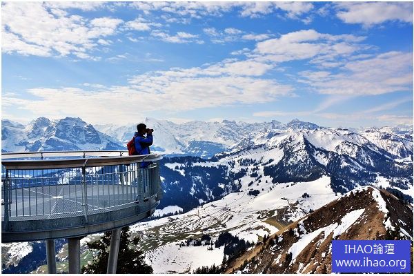 ▲登臨山上觀景台,可捕捉到綿延不斷的阿爾卑斯山光。(記者田欣雲攝影)