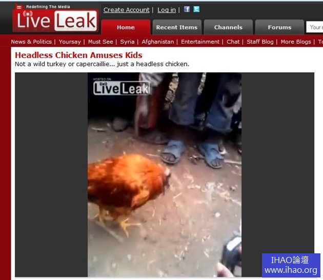 根據LiveLeak網站上傳的這段影片,這可看見隻雞在頭部被砍去後,竟然還能四處趴趴走,吸引眾多村民圍觀,有小朋友走近向無頭雞作勢挑釁,牠居然也懂得避開,讓民眾大呼「讚美主」。