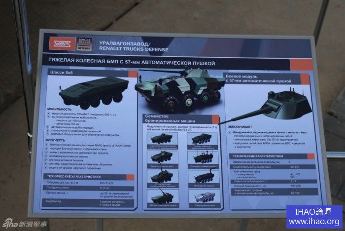 俄羅斯烏拉爾車廂廠製造廠與法國雷諾汽車共同開發一種新的步兵戰車(IFV)在今年的下塔吉爾武器展上高調亮相。該車造型科幻,內部乘員艙簡潔舒適,一改俄式戰車外表粗獷,內部粗糙的風格。該車搭配57毫米主砲,射程可達16公里。不過,這個設計概念是法國人提供的。