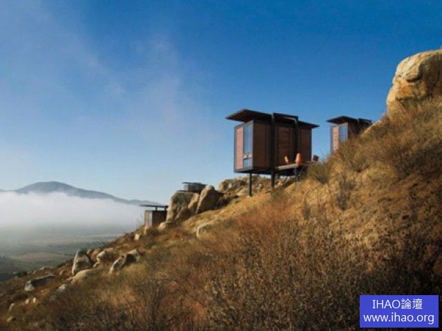 據人民網報導,在墨西哥荒漠的一座小山坡上,坐落著這家小巧別致、扣人心弦的休閑療養之所,給您遠離喧囂的愜意之感。20間風化鋼建造的240平方英尺(約22.3平方公尺)的客房體現了超現代的感覺,但更迷人的是落地窗戶,透過它能看到下加利福尼亞半島北部的瓦爾德瓜達盧佩山谷著名的葡萄園。可以在那裡品嘗著名的葡萄酒(Zinfandels 和 Smillons),坐在一個私人露天平台上看著夕陽,配上新烤的佛卡夏(一種義大利烤麵包),真是悠哉樂哉!