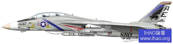這架100號可是VF-143中隊長的座機。垂尾上畫的帶翅膀的動物就是Pukin' Dogs