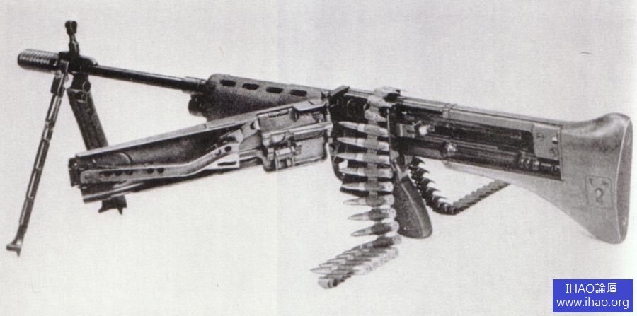 這是美國人試驗的 FG42 彈鏈供彈式改型,從打開的受彈蓋可以發現其內部與M60很相似