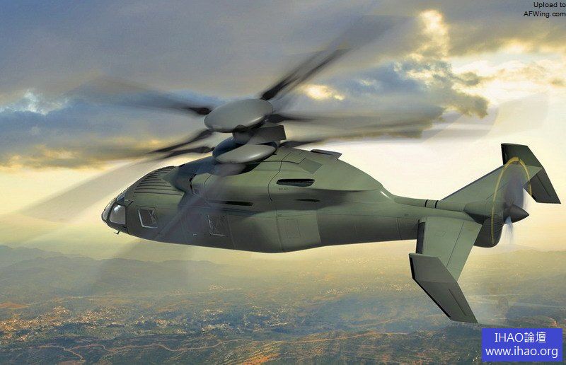美國陸軍正在進行“聯合多用途直升機”(Joint Multi-Role,簡稱JMR)和“未來直升機”(Future Vertical Lift,簡稱FVL)計劃,最終將取代UH-60“黑鷹”、AH-64“阿帕奇”和其他主流直升機,計劃2017年首飛,自然引起貝爾、波音和西科斯基等主流直升機廠商的巨大興趣。波音和西科斯基聯手,以西科斯基X-2研究直升機為基礎,採用共軸反轉剛性旋翼和推進螺旋槳技術聯手推出JMR/FVL方案。貝爾在命運多舛的V-22“魚鷹”的基礎上,推出第三代傾轉旋翼技術,翼尖發動機不再整體傾轉,而是通過傘齒輪組只傾轉旋翼部分,降低了機械複雜性,在理論上甚至有可能用安裝在機身內的發動機驅動兩側的傾轉旋翼,半剛性旋翼也加大直徑,降低翼盤載荷,避免了“魚鷹”的很多問題,以此作為貝爾JMR/FVL方案的基礎。就是歐洲直升機也以X-3研究直升機技術為基礎,推出競爭方案。歐洲直升機X-3和西科斯基X-2沒有任何關係,採用常規的單旋翼,左右推進螺旋槳,但沒有尾槳。在高速平飛時,旋翼卸載到接近風車狀態,反扭力基本消失,升力基本上靠短翼產生。在低速或者懸停時旋翼出力產生升力的情況下,用左右推進螺旋槳的不對稱推力平衡旋翼的扭力。但現在正在半路殺出一個程咬金來,名不見經傳的AVX公司推出一個新穎的方案,引起人們極大的興趣。