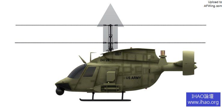 短翼和涵道在超低速和懸停時無法提供升力,這就是共軸反轉雙槳發揮作用的時候了。由於所有功率都可以用於旋翼而產生升力,除了運轉平穩和容易操縱外,共軸反轉雙槳的載重和外掛能力比單槳更強。AVX的方案在大小上和UH-60“黑鷹”相仿,正常起飛重量約為22000磅(約9980公斤),可運載12名士兵和4名機組人員,但最大外掛載重能力達到13000磅(約5900公斤),和CH-47“奇努克”相仿,遠遠超過“黑鷹”的9000磅(約4080公斤)。