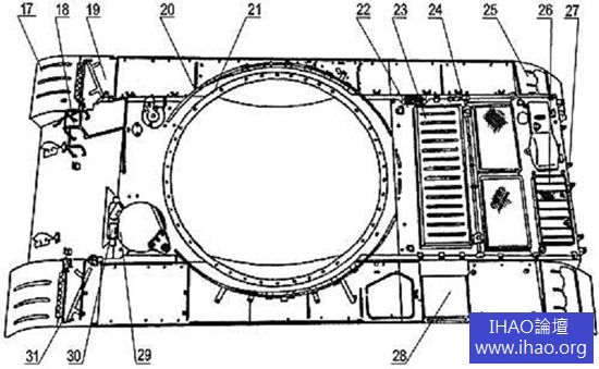 29 、駕駛員艙門 30 、駕駛員潛望鏡設備