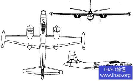 在XB-45 首飛後的一年後,1948 年7 月8 日,伊留申飛機設計局的試飛員VK克契納奇駕駛IL-28 轟炸機原型機首飛,1950 年“五一”節首次公開出現,被北約取綽號“小獵犬”(beagle)。IL-28 在外形上與B-45 十分相像,氣動佈局甚至乘員位置安排都一樣,不同之處僅在IL-28 的垂尾及平尾有些後掠,如果從上方俯視難以一眼識別。IL-28 是蘇聯第一代噴氣式轟炸機,具備和核攻擊能力,這一點也與龍捲風相似。
