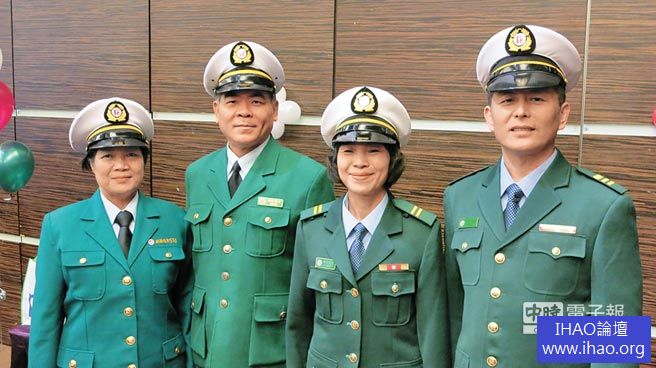 增加榮譽感中華郵政郵務稽查員換新裝(右一、二),較舊裝顏色深,並增加年資肩章。(楊竣傑攝)