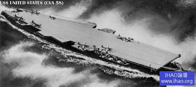 在魚和熊掌的取捨中,80,000 噸的超級航空母艦“美利堅合眾國”號(上圖)不幸成為失寵的一方,而B-36 則在海軍的一片怨聲載道中粉墨登場