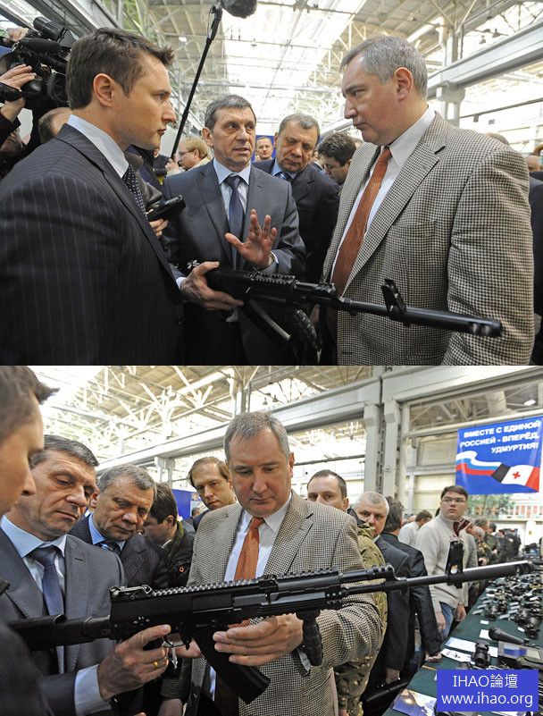 AK-12 的主設計師(左)陪同政府有關官員在伊茲瑪什公司參觀,並向其演示AK-12 的操作過程