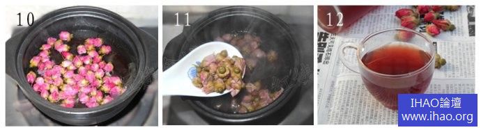 7.一直煮到玫瑰花蕾變色,把花蕾撈出來。