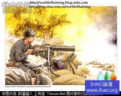 美國海軍陸戰隊的約翰巴斯隆中士他在1942年的瓜達卡納爾島戰役中用兩挺機槍和一支1911手槍撂倒了200多日本人,獲得美國榮譽勳章。