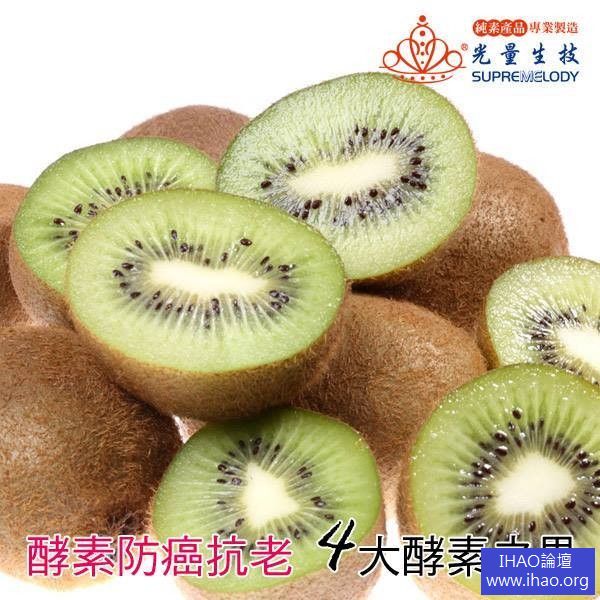 奇異果中含有獨特的消化酵素-硫蛋白分解酶,奇異果中的膳食纖維又能夠增加腸內好菌的增殖,因此具有整腸、幫助消化的作用。奇異果中的維生素C及抗氧化多酚,也同時能幫助身體抗老化,減少自由基對身體的傷害。