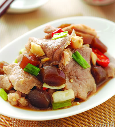 2.熱鍋倒入適量油燒熱,依序放入辣椒片、蔥段、脆瓜小火炒出香味,再加入豬肉片改中火續炒至熟透,最後加入所有調味料續炒至收乾即可。