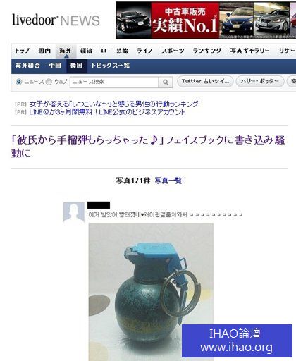 男友贈手榴彈 女子po文炫耀遭人肉