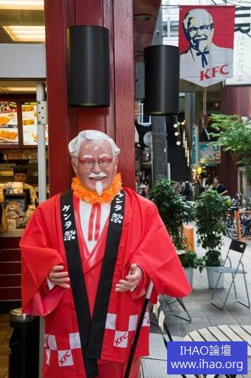 聖誕夜前夕的肯德基:日本這個國家在烹飪方面上,一直以健康飲食、喜愛壽司而著名,不過近年漢堡很受喜愛。雖然日本傳統上不慶祝耶誕節,但肯德基專賣店卻很受外國人歡迎。"