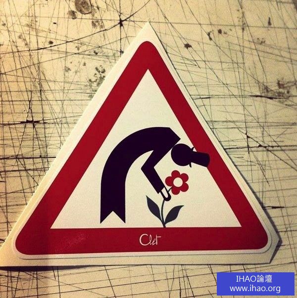法國街頭藝術家Clet Abraham最喜歡拿交通號誌開玩笑,幾乎每個國家都通用的禁止通行符號遇到他就有了各種不同的樣貌與功用,像是汽車的擋風玻璃、巨大的原木,或是小鳥暢快人生的好地方,簡單加上幾筆就讓人忍不住發笑。