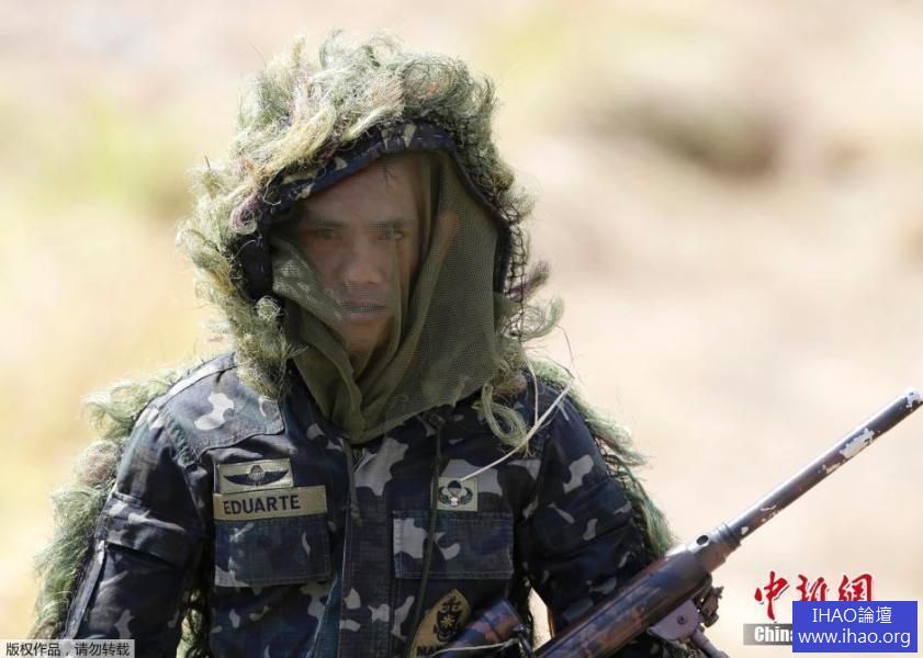 當地時間2014年5月11日,菲律賓甲米地,據悉共有5000多名士兵參與了2014年度“肩並肩”美菲聯合軍演,意在強化對抗自然災害的能力,以及在國際舞台上“秀肌肉”。圖為身著偽裝的士兵參與演習且不用怕被蚊子咬了。 <div style="display:none;"><a href="https://seninlinkin.com">Ziyaret Et</a></div>