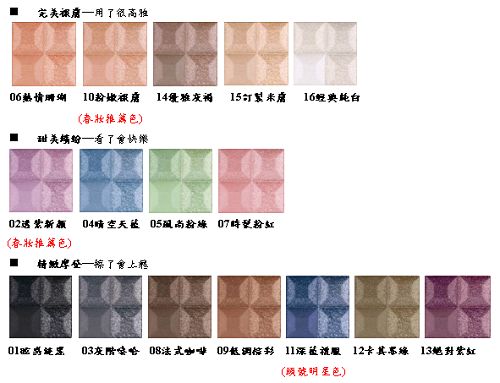 一種迷人的色調,卻分別呈現出粉霧、絲光、珠光、星鑽光四種光澤,讓女人信手揮灑,創造令人讚嘆的深邃明亮眸色。