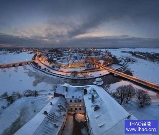 維堡(Vyborg)坐落於俄羅斯(Russia)和芬蘭(Finland )的交界處,並且被塞馬運河(Saimaa Canal)環繞著,運河到冬天時會結冰呢!在城堡的塔上向下俯瞰,整個小鎮看起來完全是被積雪所覆蓋,非常美麗。