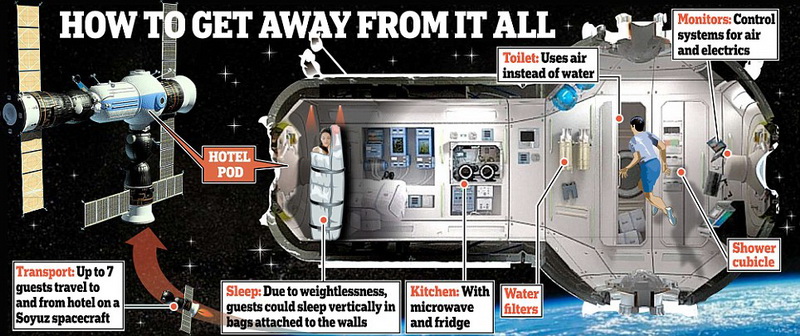 此外,由於太空是無重力狀態,賓客可以任意選擇想要水平或者是垂直的床鋪,而沐浴的洗澡水則會採取完全密封式,以免水四處亂濺。但為期5天的住宿可索費不低,要價至少10萬英鎊(約新台幣473萬元)。