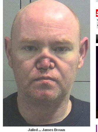 房地產開發商、同是也是一名百萬富翁的英國男子詹姆斯布朗(James Brown),由於(用鼻子)吸古柯鹼太多,結果造成他的鼻樑軟骨塌陷!樣子十分驚悚。