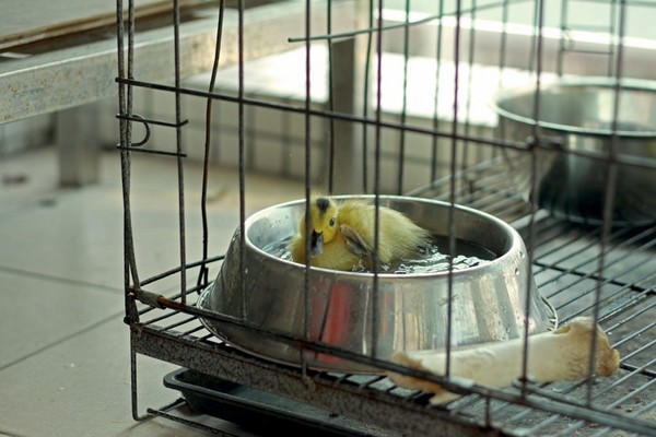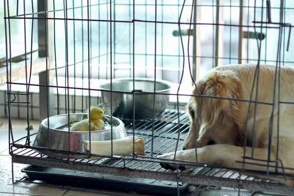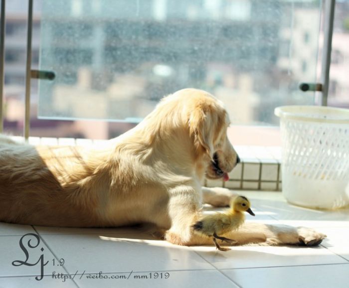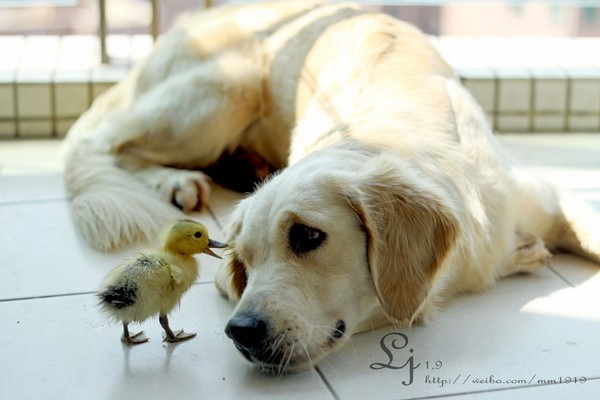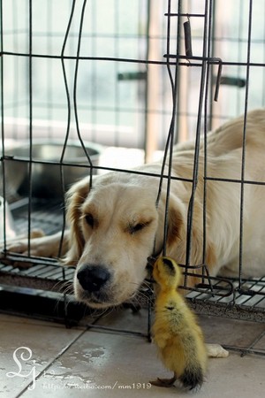 住在廣州的黃金獵犬「菲菲」跟一隻小鴨成為跨越種族的好朋友,會互相臉親臉,非常親近。小鴨甚至跳到菲菲的水碗裡,把它當泳池和澡盆,在上面戲水和洗澡。菲菲一開始雖然傻眼,但隨後絲毫不介意,繼續喝。