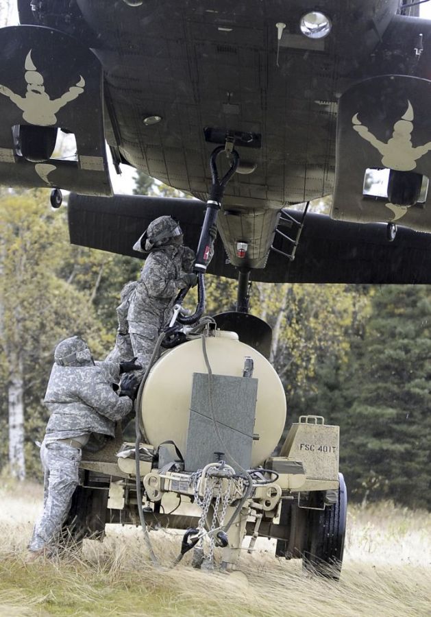 陸軍國民警衛隊第207航空團 第六工兵營 前進支援連,9月20日2012年進行直升機吊掛操作。