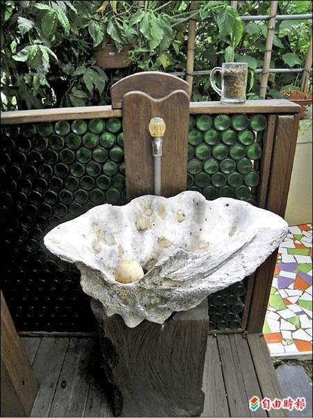 三年前,他靈機一動,想用空酒瓶打造環保廁所,親友也幫他收集酒瓶,短短時間就累積五十餘箱,以一箱廿四瓶計算,共用了約一千三百個酒瓶。