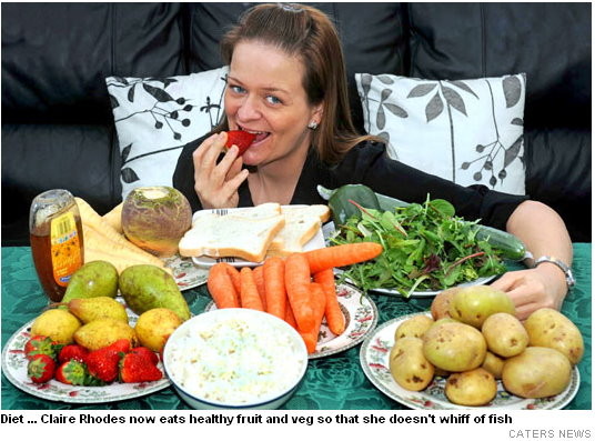 ▲克萊兒不能吃富含三甲胺的食物,只好多吃蔬果。(圖/取自英國《太陽報》)